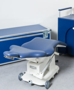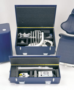 Mobil unit för äldreboenden, skolor och fältkliniker. Med stol, arm, instrumentbrygga, fotkontroll, OP-lampa, röntgen och drivenhet med motor, kompressor och vatten. UnicLine Mobile har samma höga hygienstandard och ergonomi som en stationär unit.