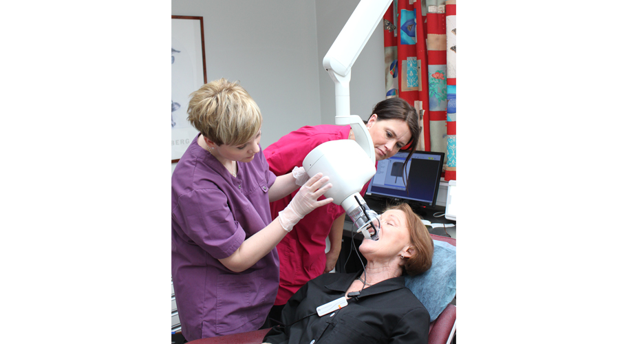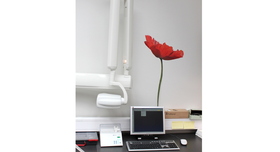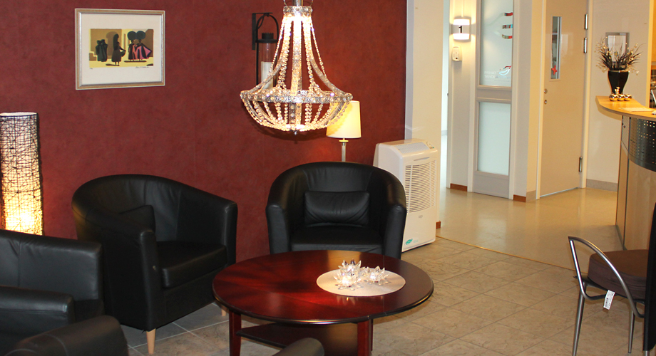 Hos tandläkare Ove Brunström har de vågat sig på ett annorlunda tema. Ove har inrett ett härligt murrigt sällskapsrum som passar fint att umgås i t.ex. på personalens afterwork. Även väntrummet går i samma stil med ljuskrona och skinnfåtöljer. När det gäller behandlingsrummen har man däremot valt en ljus, klinisk inredning. Här har de lättat upp de vita väggarna med färgglada blomschabloner från Ikea. Ove har valt Svensk Dentalservice som helhetsleverantör när det gäller röntgen och har investerat i en OP30 panoramaröntgen, Focus intraoral röntgen, Snapshot sensorer och Cliniview programvara.
